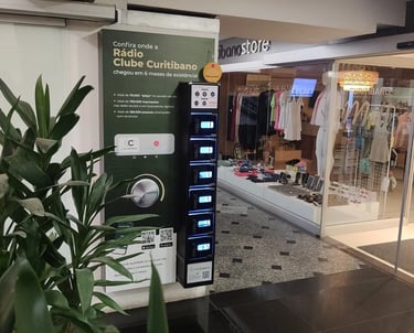 Além da adesivagem, a tela dos totens oferece uma plataforma dinâmica para divulgar sua marca, garantindo visibilidade e engajamento.