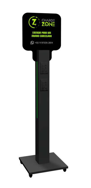 Os totens de carregamento podem ser personalizados com a logo da sua empresa ou evento, criando uma experiência mais conectada com a sua marca e proporcionando um toque único ao ambiente.